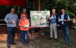 Bei der feierlichen Eröffnungsfeier am 26. September erkundeten 35 Wander*innen nach der Enthüllung der Tafel den KulturaTrail unter der Wanderleitung von Wolfgang Bergmann, dem Häuserreferenten des Naturfreundehauses Hanau-Rodenbach. Zurück im Naturfreundehaus stärkte sich die Wandergruppe in gemütlicher Atmosphäre. Landrat Thorsten Stolz und Bürgermeister Klaus Schejna betonten den Wert des KulturaTrails als touristische Attraktion für Rodenbach.