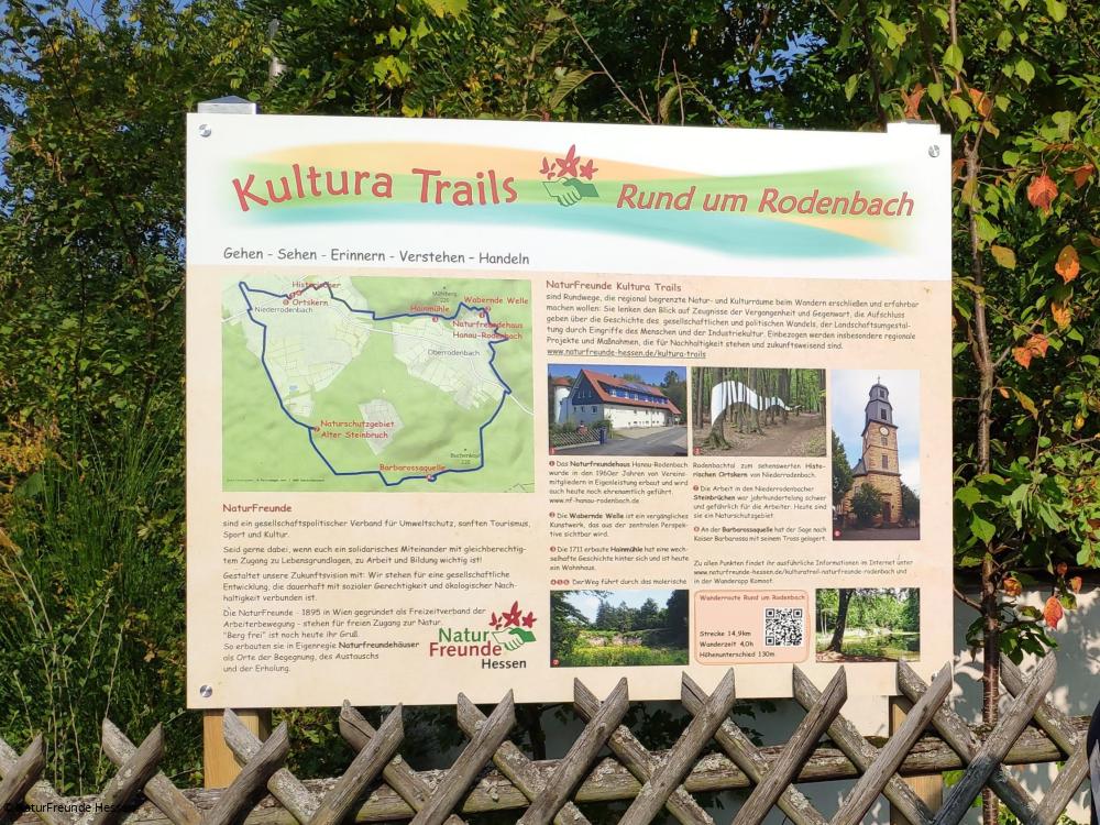 Natur und Kultur gleichzeitig erleben – dazu lädt der erste KulturaTrail der NaturFreunde ein, der im September im hessischen Spessart westlich von Frankfurt am Main eröffnet wurde. Auf dem 14 Kilometer langen Rundweg um das Naturfreundehaus Hanau-Rodenbach können interessierte Wandernde mittels einer App kulturhistorische Sehenswürdigkeiten entlang des Weges erleben.