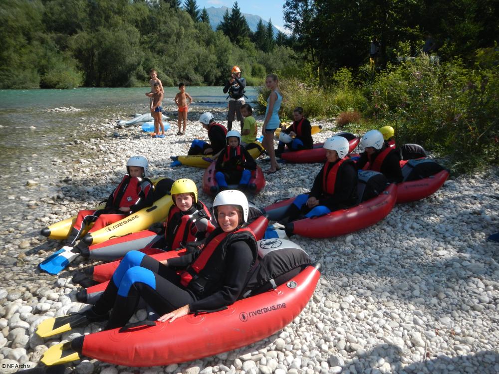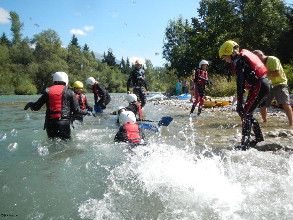 Die Gruppe ist groß in diesem NaturFreunde-Sommercamp: 74 Leute zwischen 2 und 68, darunter 35 Kinder und Jugendliche. Dazu kommen 6 Ausbilder, je drei von den Bundeslehrteams Berg- bzw. Kanusport.