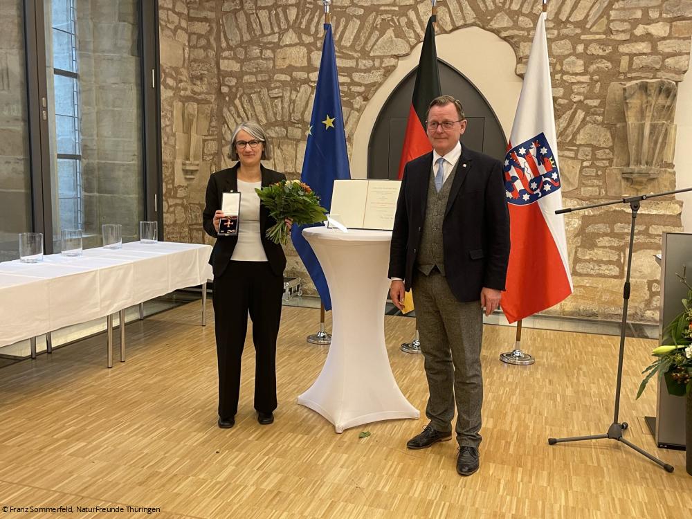 Für ihren ehrenamtlichen Einsatz in der Förderung der Partizipation von Kindern und Jugendlichen sowie der Stärkung der demokratischen Kultur hat die NaturFreundin Anja Zachow am 15. März den Verdienstorden der Bundesrepublik Deutschland erhalten. Der Thüringer Ministerpräsident Bodo Ramelow ehrte die langjährige NaturFreundin im Namen von Bundespräsident Frank-Walter Steinmeier im Augustinerkloster zu Erfurt.