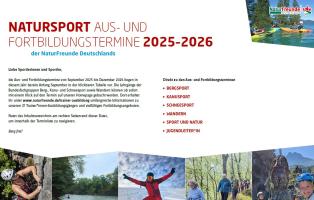 Kinderleicht werden Kursauswahl und -buchung durch die klickbare PDF-Tabelle „Natursport-Aus- und -Fortbildungstermine 2025/26 (hier Download als PDF-Datei). Mit nur einem Klick auf eine Terminzeile gelangt man direkt aus der Tabelle zum Lehrgang auf naturfreunde.de und kann sich gleich anmelden. Die Tabelle wurde bereits per E-Mail an alle aktuell mehr als 1.200 lizenzierten Trainer*innen im Verband verschickt.