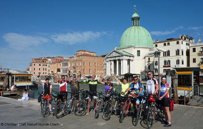 Nach der faszinierenden Bergwelt der Dolomiten starteten die Naturfreunde Radler schließlich zum Grande Finale in die venezianische Ebene: auf Nebenstraßen bis Mestre und dann schließlich über die Ponte della Liberta zum Tourenziel Venedig.